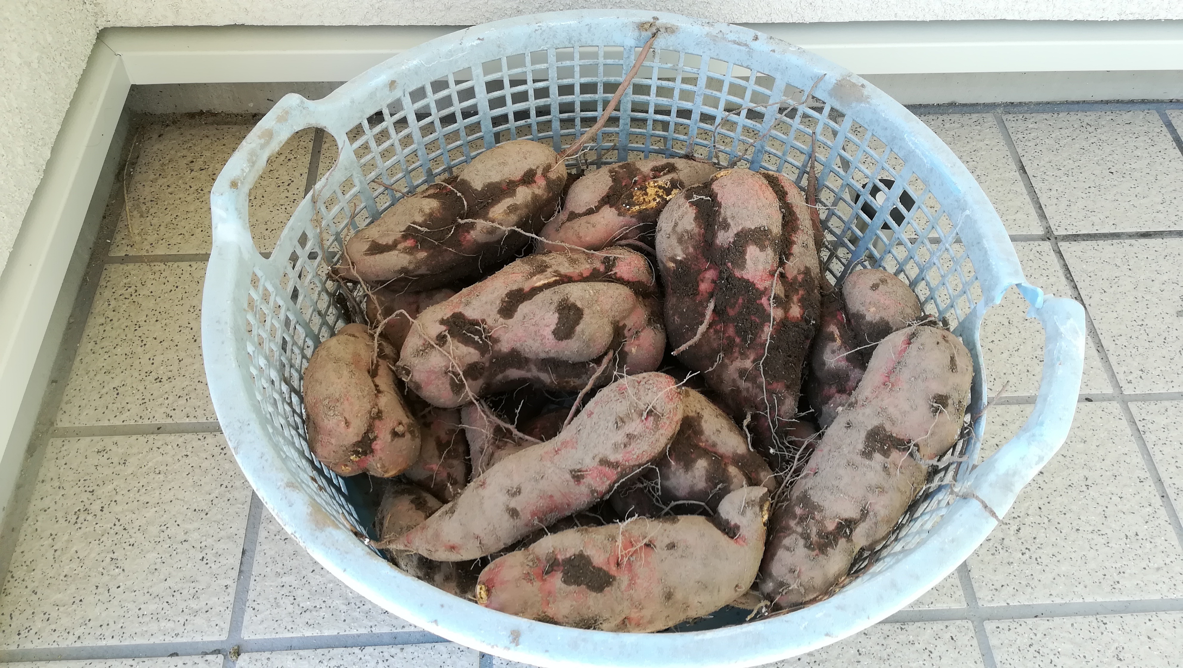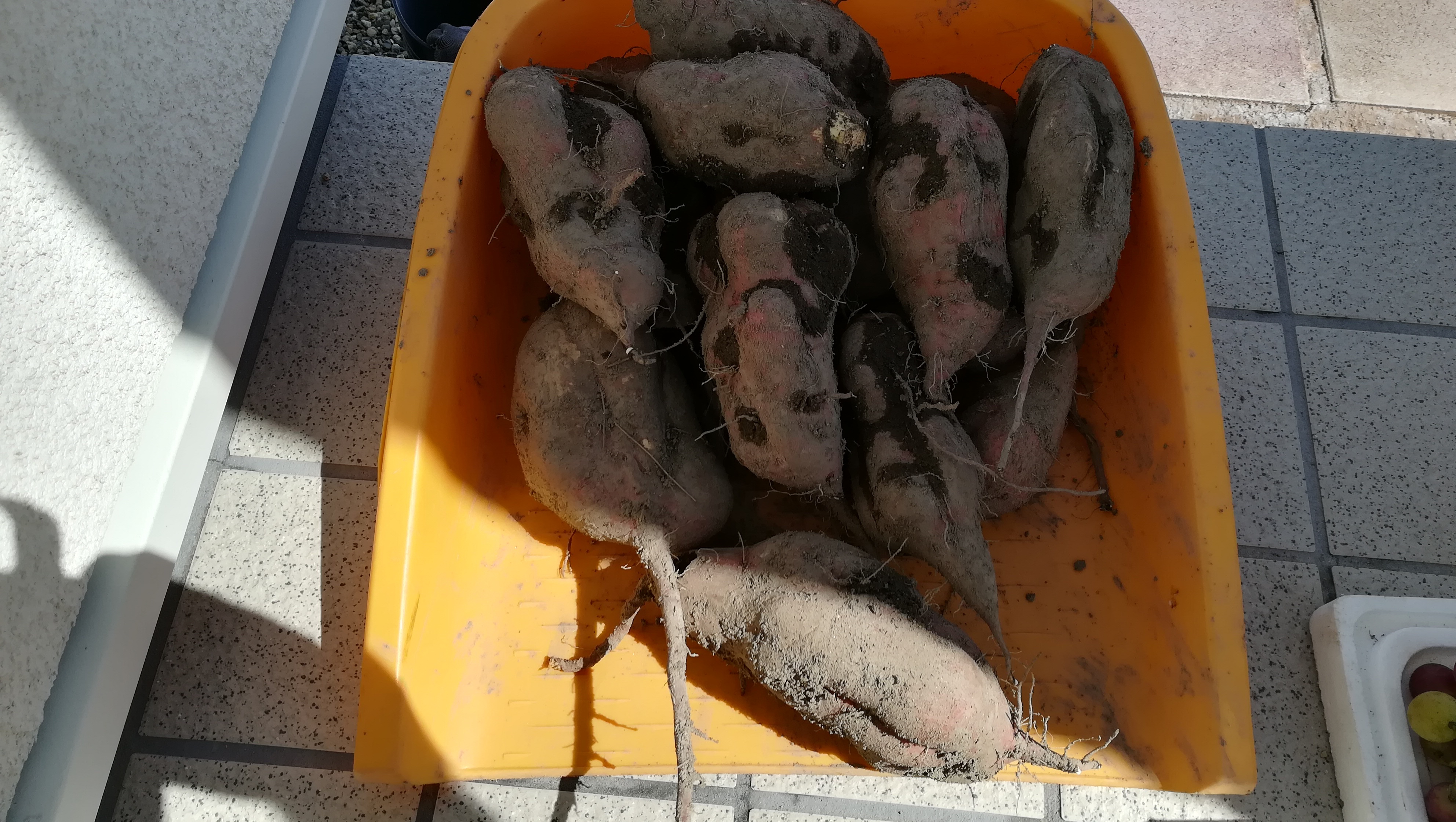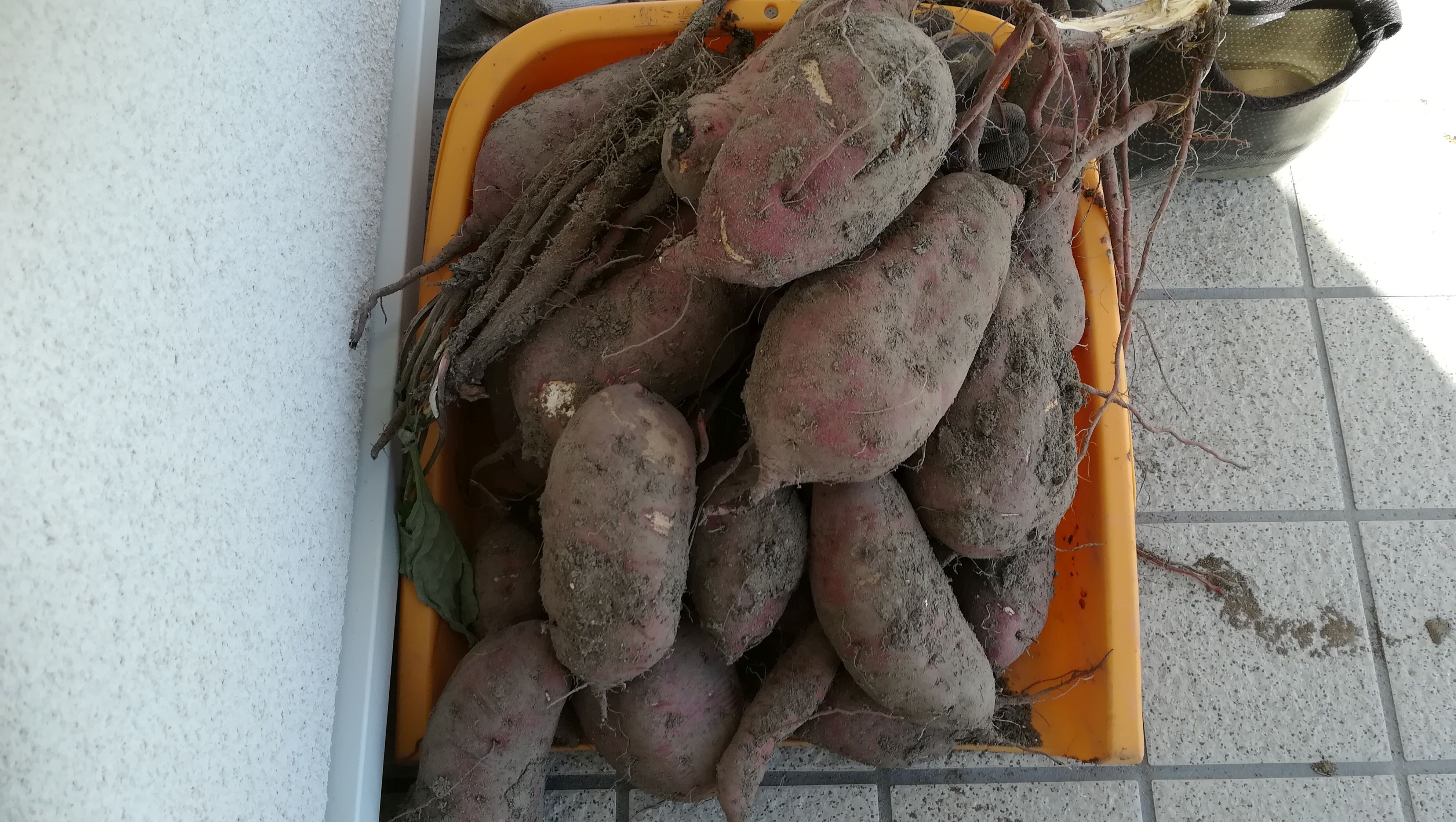 お芋は結構たくさんとれて、これから焼き芋生活・・・と思ったけど、収穫したてだと甘くないということを知らなかったわ〜。ちょこっと寝かせてから食べよう。