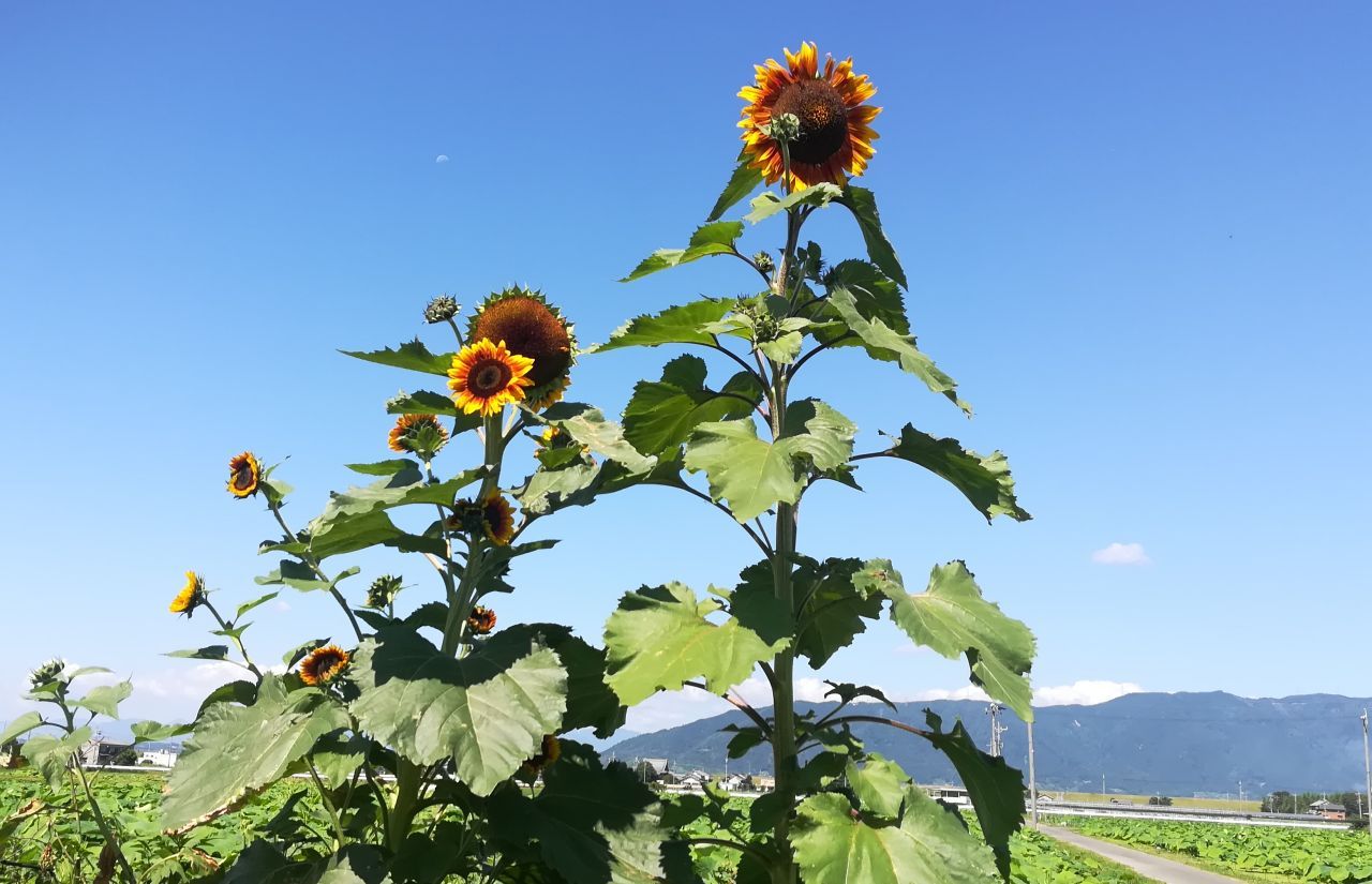 実家のそばにすんごい高さのヒマワリがさいてました。